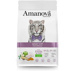 Amanova Cibo Secco Super Premium per Gatti Adulti al Pesce Bianco - 100% Naturale, Ipoallergenico, Monoproteico, Low Grain - 1,5 kg