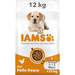 IAMS Advanced Nutrition Puppy Large Pollo - Cibo secco completo per cuccioli di taglia grande con pollo fresco, 12 kg