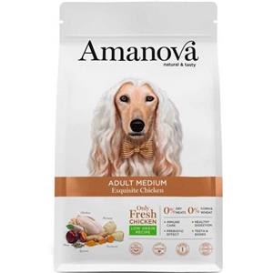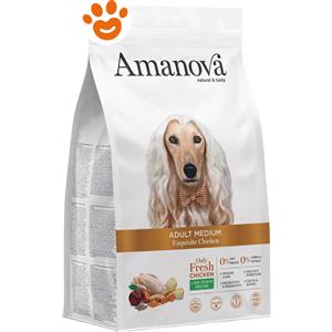 Amanova Cibo Secco Super Premium per Cani Adulti Taglia Media Gusto Pollo - 100% Naturale, Ipoallergenico, Monoproteico, Low Grain - Formato da 2 kg