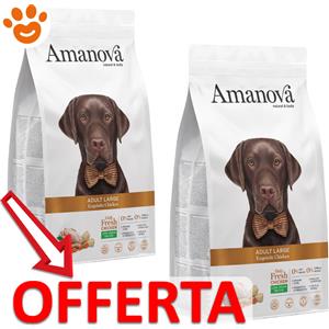 Amanova Cibo Secco Super Premium per Cani Adulti Taglia Grande Gusto Pollo - 12 Kg, Ipoallergenico e Monoproteico