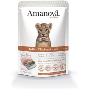 Amanova Kitten Cibo Umido Pollo e Pesce Bianco - 85 g - Completo e Grain Free per Gattini