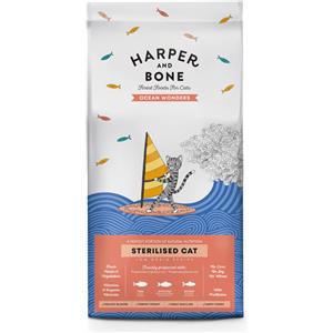 HARPER & BONE Gatto Sterilised Ocean Wonders - Cibo Secco 2 kg con Salmone, Tonno e Pesce Bianco, Probiotici e Basso Contenuto di Cereali