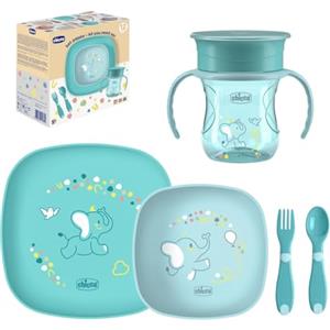 Chicco Set Pappa 12M Azzurro - Include Tazza, Ciotola, Piatto e Posate per Svezzamento