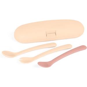 Béaba Set di 2 Posate Ergonomiche per Bambini - Cucchiaio e Forchetta Azzurri con Custodia