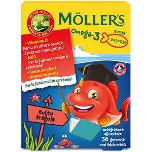Moller's Omega 3 Jelly Fish - Integratore Alimentare in Caramelle Gommose Gusto Fragola per Bambini, 36 Gommose con Omega-3 e Vitamina D3