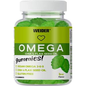 Weider Omega Gummies - Caramelle Gommose Vegane con Omega 3-6-9, Sapore Lime, 50 Pezzi, Senza Glutine