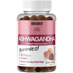 Weider Ashwagandha Gummies - 40 Caramelle Gommose Gusto Arancia Dolce con Ashwagandha KSM-66 e Vitamina C, Senza Zucchero e Senza Glutine
