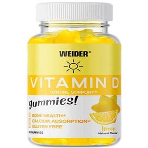 Weider Vitamin D Gummies - 50 Caramelle Gommose al Limone con Vitamina D3, Senza Zucchero e Glutine
