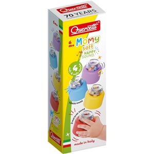 QUERCETTI Momy Soft Happy Sound - 4 Sonagli Colorati e Mattoncini Morbidi per Bambini 6-36 Mesi, Lavabili e Igienici