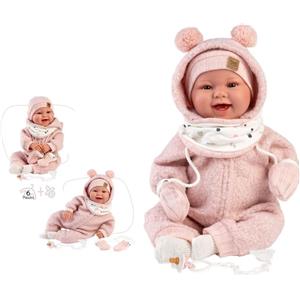 Llorens Tala - Bambola Reborn 44 cm con Occhi Marroni, Corpo Morbido e Vestito Invernale Rosa