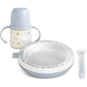 Suavinex Set Pappa Calda My Family Azzurro - Piatto Termico, Cucchiaio in Silicone e Biberon per Bambini dai 6 Mesi