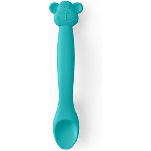 Suavinex Cucchiaio in Silicone Verde per Bambini 4 Mesi con Manico a Forma di Scimmia, Flessibile e Morbido per Gengive Sensibili