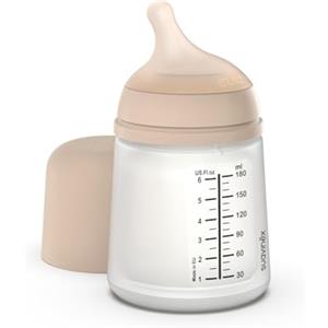 Suavinex Biberon Anti-Coliche Zero.Zero 180 ml in Silicone con Tettarella a Flusso Adattabile - Medium Nude