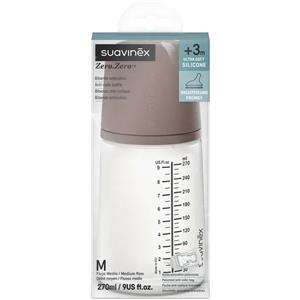 Suavinex Biberon Anti-Coliche Zero Zero 270ml Silicone Flusso Medio 3 Mesi Deep Nude