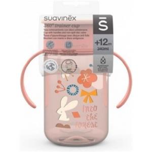 Suavinex 360° Training Cup Rosa 340ml - Tazza Antigoccia con Manici per Bambini 12m