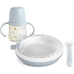 Nuvita Set Pappa Completo 6 Mesi - Piatto Termico, Cucchiaio in Silicone e Tazza Antigoccia - Powder Blu