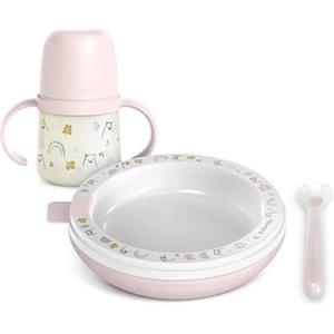 Suavinex My Family Set Svezzamento Rosa - Set Pappa 6M con Piatto, Ciotola, Bicchiere e Cucchiaio Ergonomico in A Tavola