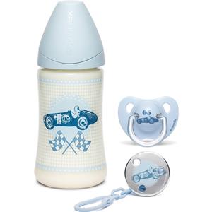 Suavinex Set Nascita Azzurro - Biberon 270ml con Tettarella Anatomica, Succhietto e Catenella