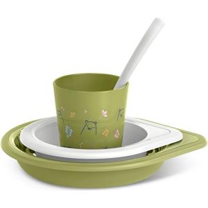Suavinex Set Svezzamento My Family Verde Pistacchio - 4 Pezzi: Piatto, Scodella, Bicchiere e Cucchiaio Ergonomico per Bambini 6 Mesi