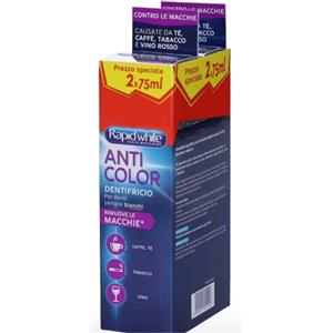Bionike Rapid White Dentifricio Sbiancante Anticolor Bipack 2 x 75ml - Rimuove Macchie da Caffè, Tè e Tabacco