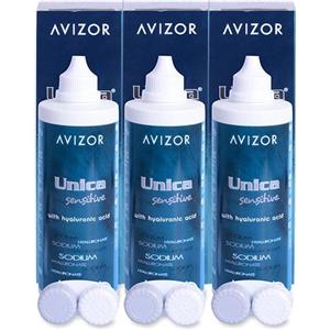 Avizor Unica Sensitive - Soluzione per lenti a contatto 3 x 350 ml, ideale per occhi sensibili con ialuronato di sodio