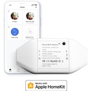 Meross MSS710HK Interruttore Smart WiFi Universale 10A con HomeKit, Funzione Timer, Telecomando e Controllo Vocale - Compatibile con Alexa e Google Home