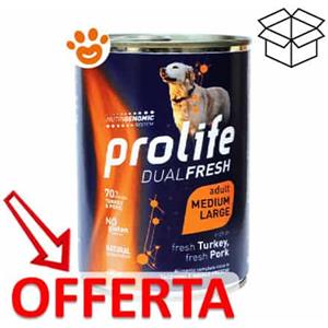 Prolife Dual Fresh Cibo Umido per Cani Adulto Medium/Large con Tacchino e Maiale - Lattina da 400g