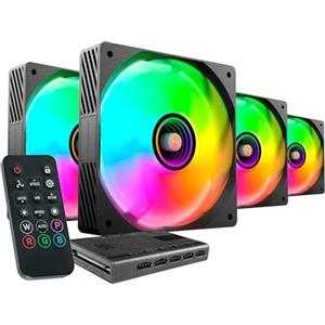 GAMDIAS Aeolus M3 - Kit di 4 Ventole RGB da 12cm con Centralina e Funzione PWM
