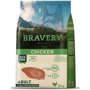 Bravery Crocchette per Cani Adulto Medium/Large al Pollo 12kg - Grain Free, Monoproteico e Ipoallergenico