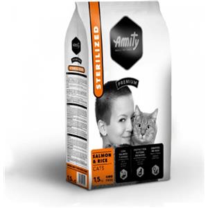 AMITY Gatto PREMIUM Salmone e Riso Sterilizzato 1,5 KG - Crocchette con 25% Carne e 15% Salmone, Alta Appetibilità e Digeribilità