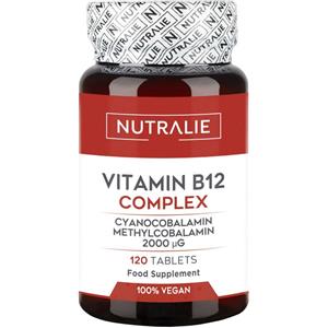 Nutralie Vitamina B12 Complex 2000 mcg - 120 Compresse Vegane con Cianocobalamina, Metilcobalamina, Acido Folico e Vitamina B6 per Supporto Energetico
