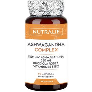 Nutralie Ashwagandha KSM-66 Puro Forte con Rhodiola e Ginseng Indiano - 60 Capsule Vegane con Vitamine B6 e B12