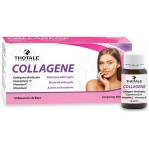 Thotale Collagene - Integratore Alimentare con Collagene, Vitamina C, Acido Ialuronico, Vitamina E e Coenzima Q10 per Pelle, Ossa e Cartilagini - 10 Flaconcini da 10 ml
