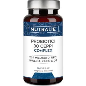 NUTRALIE FERMENTI LATTICI - Probiotici e Prebiotici 30 Ceppi, 264 Miliardi CFU, Lactobacillus Gasseri e Acidophilus, Senza Lattosio - 60 Capsule
