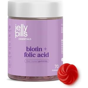 Jelly Pills® Gommose Biotina 10.000 mcg Acido Folico & Zinco - 70 Gummies Vegane al Gusto Lampone - Senza Zuccheri Aggiunti per Crescita e Forza di Capelli e Unghie