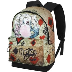 DC Comics Harley Quinn Mad Love - Zaino Urbano Leggero Beige, 30 x 43 cm, Capacità 22 L con Spallacci Imbottiti e Cinghia per Trolley