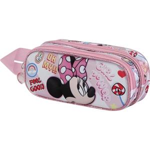 Disney Minni Mouse Too Cute - Astuccio 3D Doppio Rosa con 2 Scomparti e Cerniera