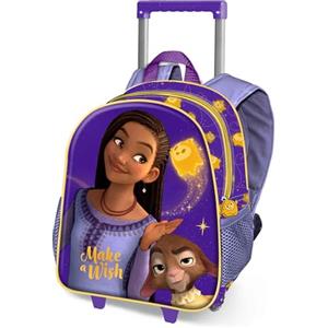 Disney Wish Star - Zainetto 3D con Ruote Piccolo Lilla, 26 x 34 cm, Capacità 12,5 L, Manico Telescopico e 2 Tasche Laterali