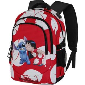 Disney Lilo e Stitch Kiss - Zaino Running PLUS Rosso, 34x46 cm, Capacità 32L, 3 Scomparti e Porta USB
