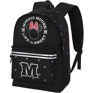 Disney Minni Mouse Symbol - Zaino Argento e Nero, 30 x 41 cm, Capacità 22 L con Tasca per Dispositivi Elettronici