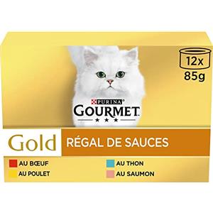 Gourmet Gold Straccetti - Alimento umido per gatti con manzo, pollo, salmone e tonno, 12 x 85 g