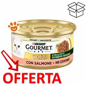 Purina Gourmet Gold Straccetti con Salmone - Cibo Umido per Gatti in Lattina da 85 gr, Senza Coloranti e Conservanti