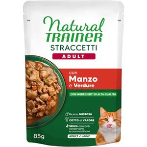 Trainer Natural Gatto Straccetti con Manzo e Verdure - Cibo Umido Completo per Gatti Adulti, 85 g