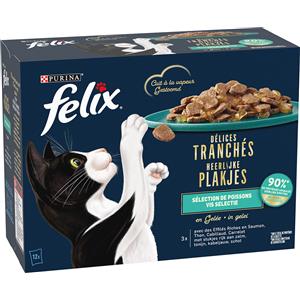 Purina Felix Le Ghiottonerie Multipack - Cibo Umido per Gatti con Salmone e Tonno in Gelatina - 12 Bustine da 85g