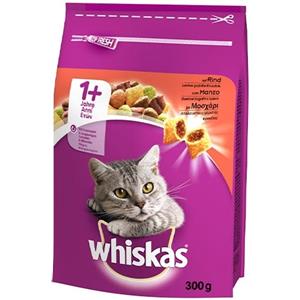 WHISKAS Croccantini Adulto 1 al Manzo - 300 gr, Nutrizione Completa e Bilanciata