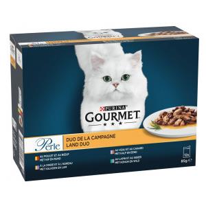 Gourmet Perle Duetti con Carne - Cibo Umido per Gatti, 12 x 85 g, Varianti Pollo-Manzo, Tacchino-Agnello, Vitello-Anatra
