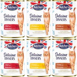 Butcher's Cibo per gatti Delicious Dinners - Bocconcini in gelatina con Pollo, Manzo e Selvaggina, Multipack da 12 x 400 g