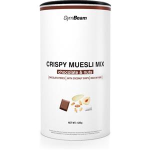 GymBeam Crispy Muesli Mix 420g - Cereali Ricchi di Proteine e Fibre con Fiocchi d'Avena, Frutta Secca e Nocciole al Cioccolato per Snack e Colazione Sani