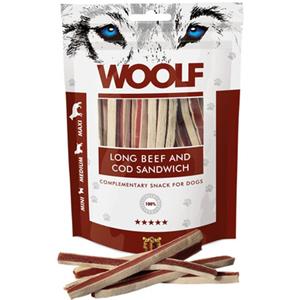 Woolf Snack Sandwich Lungo di Manzo e Merluzzo 100g - 100% Proteine Naturali per Cani