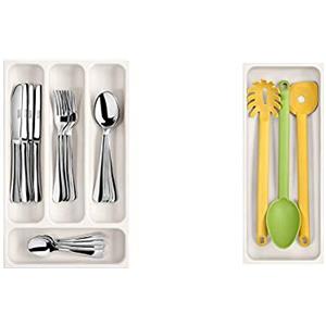 Tescoma 899410 FlexiSpace Porta Posate da Cassetto, Plastica, Bianco, 37 x 22,2 X 4,5 cm & 899432 FlexiSpace Porta Utensili da Cassetto, Plastica, Bianco, 37 x 15 X 4,5 cm